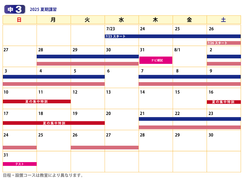 中学生の夏期講習中1~中3