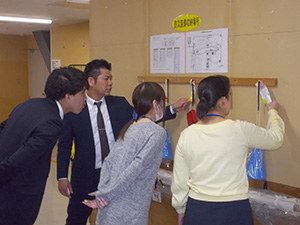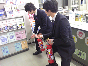 教室の防火管理者を中心に緊急時の避難方法、生徒の誘導方法と誘導経路、防災器具の点検を教室スタッフ全員で確認と訓練を行いました。 (写真は南船橋教室・三鷹教室)