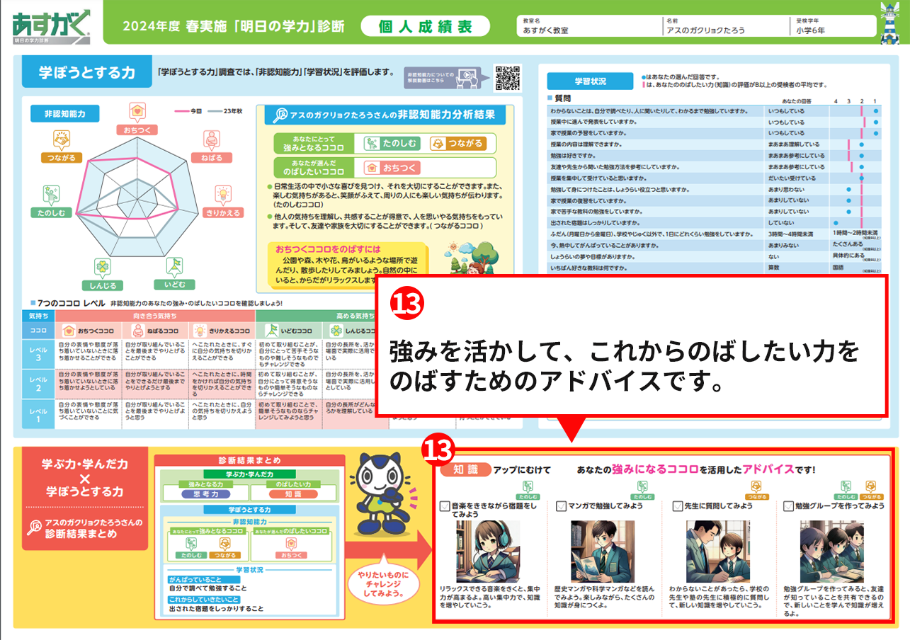| 特長3 | 「主体的に学ぶ力」を診断し、 一人ひとりに合った学習法を提案。 |